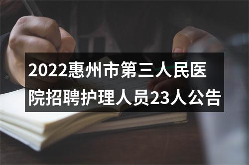 【2022惠州市第三人民医院招聘护理人员23人公告】相关岗位: