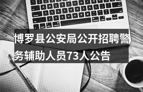 因博罗县公安局工作需要,根据《广东省公安机关警务辅助人员管理办法》、《惠州市公安机关警务辅助人员管理办法》和县政府常务会议纪要的决议等文件规定,按照公开、平等、竞争、择优的原则,面向社会招聘73名警务辅助人员,现将有关事项公告如下: