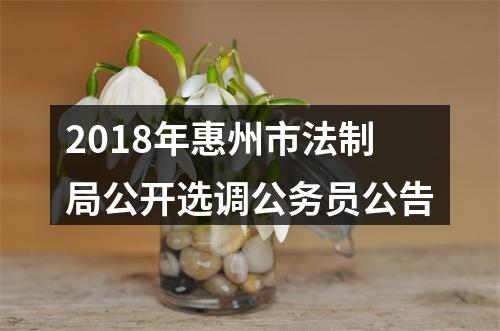 公务员遴选:2018年惠州市法制局公开选调公务员公告已发布,报名时间:2018年1月26日止。请参加本次公开遴选公务员的考生在规定时间内报名,具体公告详情如下。更多惠州公选考试备考资料,请点击惠州公选考试网。