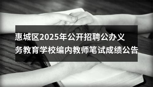 原标题:百万英才汇南粤——惠城区2025年公开招聘公办义务教育学校编内教师笔试成绩公告