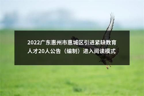 【2022广东惠州市惠城区引进紧缺教育人才20人公告(编制)进入阅读模式】相关岗位: