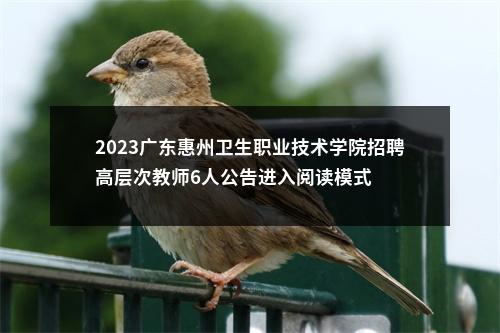 【2023广东惠州卫生职业技术学院招聘高层次教师6人公告进入阅读模式】相关岗位: