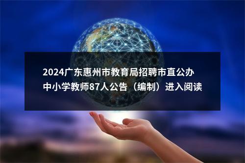 根据惠州市教育局直属公办中小学校发展需要,经研究,惠州市教育局定于2024年4-5月在惠州面向社会公开招聘87名市直公办中小学教师。待拟聘用人员确定后,除骨干教师外,其余教师由惠州市教育局统一分配至市直有关公办中小学校。现将有关事项公告如下:
