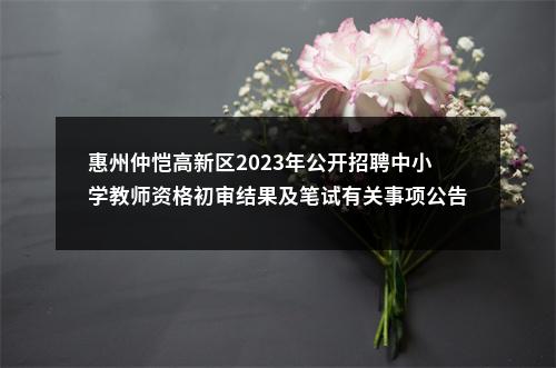 原标题:惠州仲恺高新区2023年公开招聘中小学教师资格初审结果及笔试有关事项公告(三)