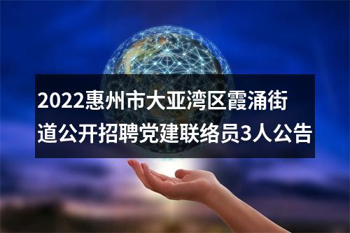 【2022惠州市大亚湾区霞涌街道公开招聘党建联络员3人公告】相关岗位: