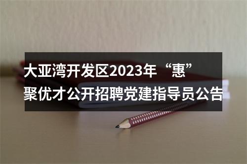 原标题:大亚湾开发区2023年“惠”聚优才公开招聘党建指导员公告