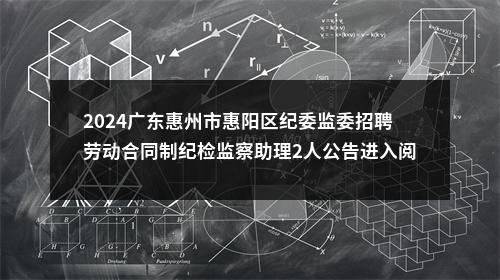- 2024广东惠州市惠阳区纪委监委招聘劳动合同制纪检监察助理2人公告进入阅读模式
