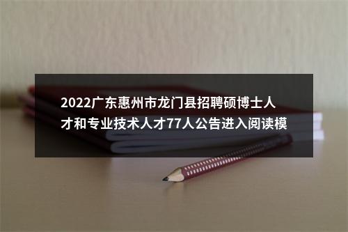 原标题:惠州市龙门县2022年公开招聘77名硕博士人才和专业技术人才公告