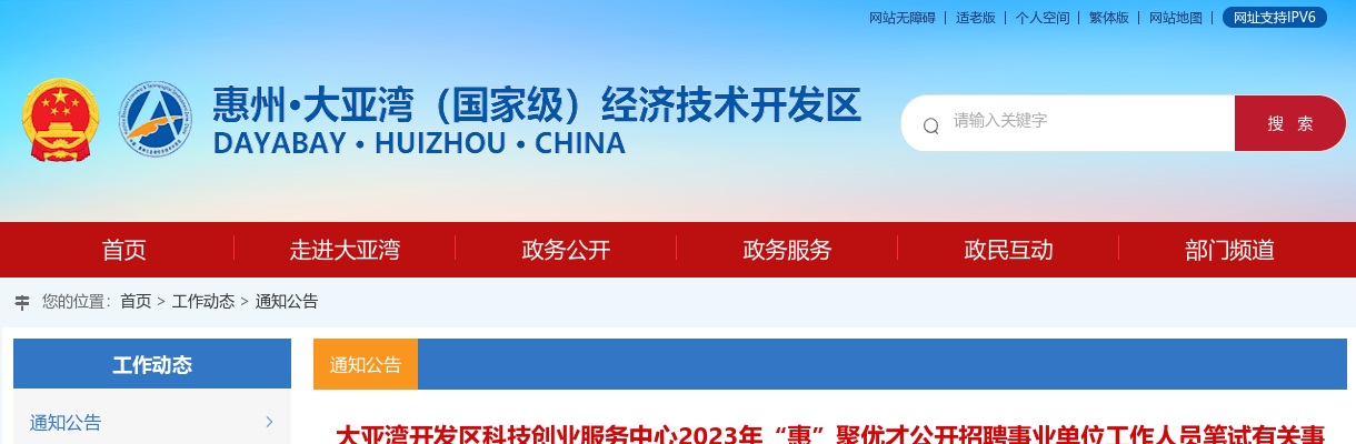 原标题:大亚湾开发区科技创业服务中心2023年“惠”聚优才公开招聘事业单位工作人员笔试有关事项的公告