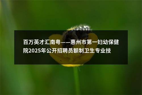 原标题:百万英才汇南粤——惠州市第一妇幼保健院2025年公开招聘员额制卫生专业技术人员公告