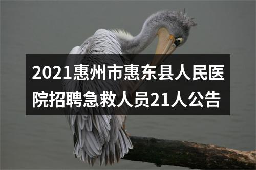 因工作需要,惠东县人民医院面向社会公众招聘院前急救人员21名,现将有关事项公告如下: